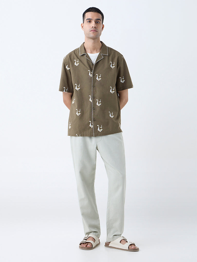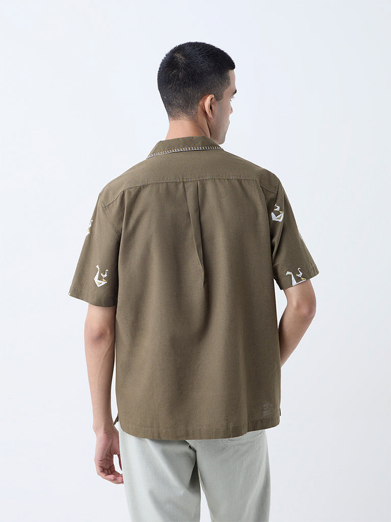 ETA Olive Embroidered Relaxed-Fit Cotton-Blend Shirt