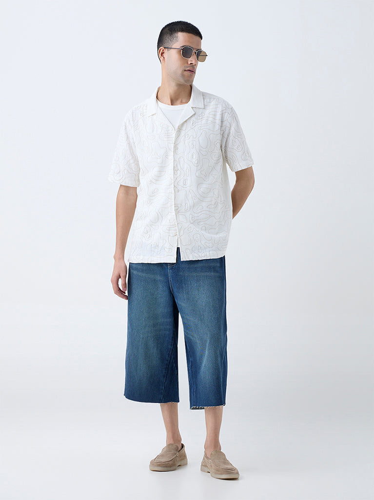 ETA White Printed Relaxed-Fit Cotton-Blend Shirt