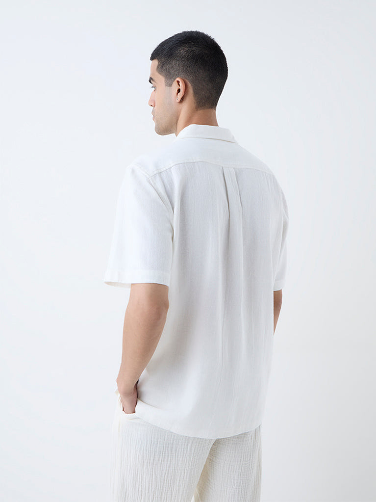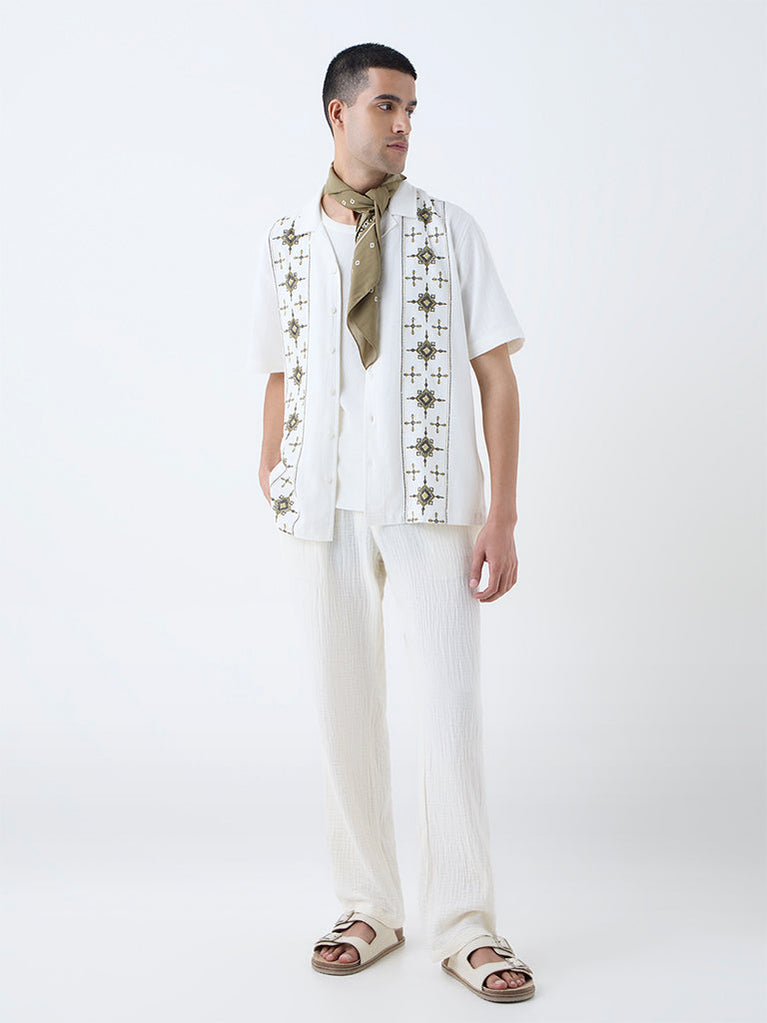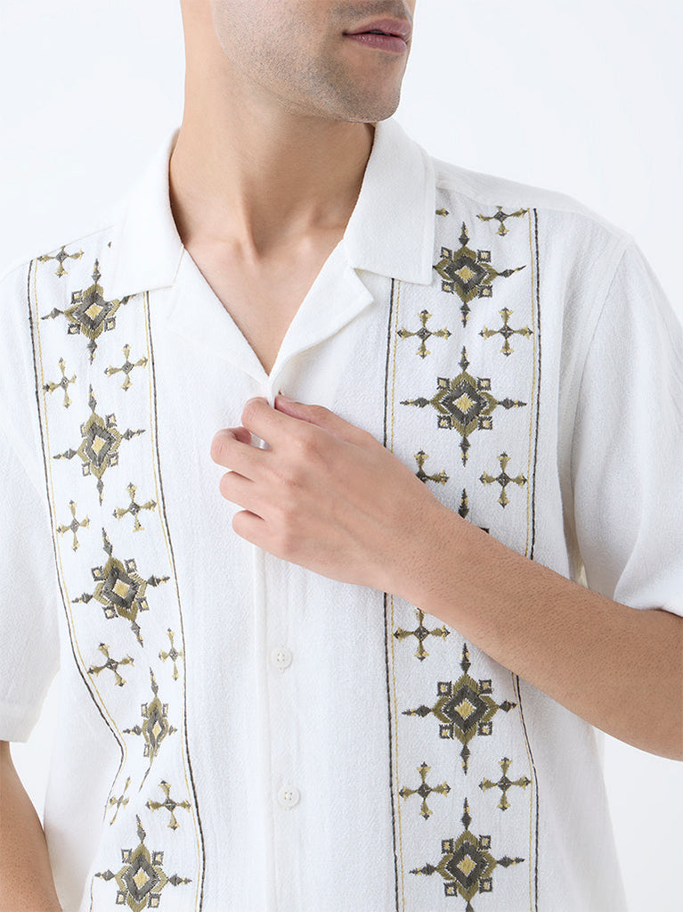 ETA White Embroidered Relaxed-Fit Cotton Shirt