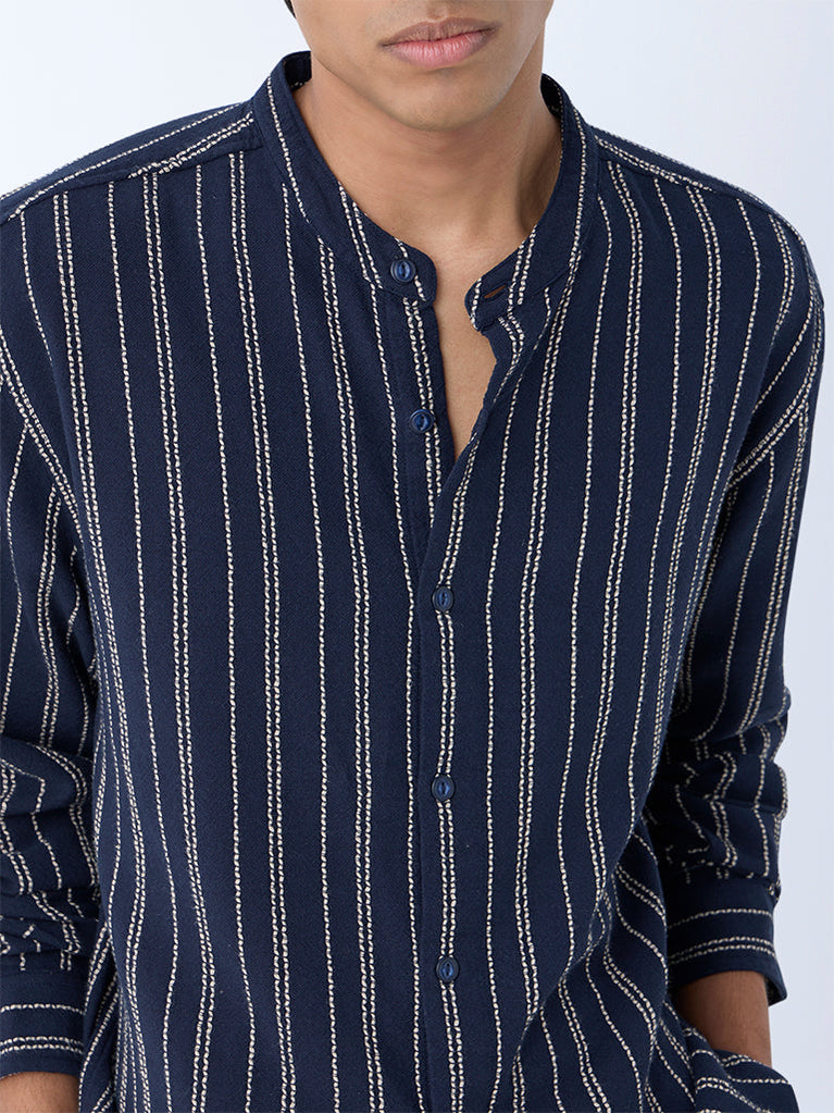 ETA Navy Striped Relaxed-Fit Cotton Shirt