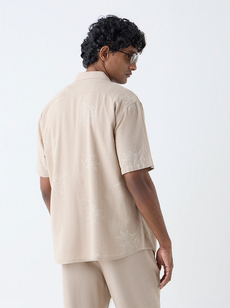 Ascot Beige Floral Design Relaxed-Fit Shirt