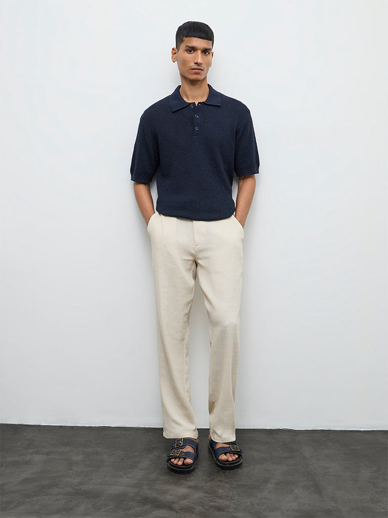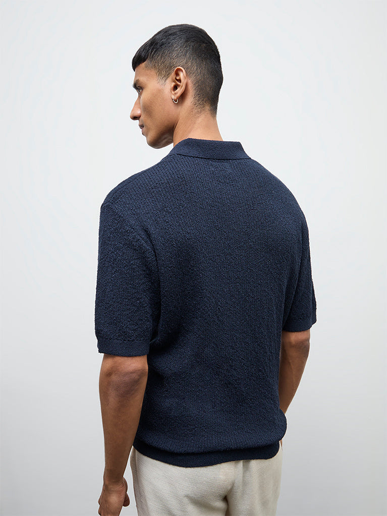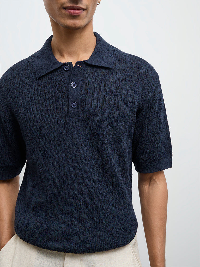 ETA Navy Textured Relaxed-Fit Polo T-Shirt