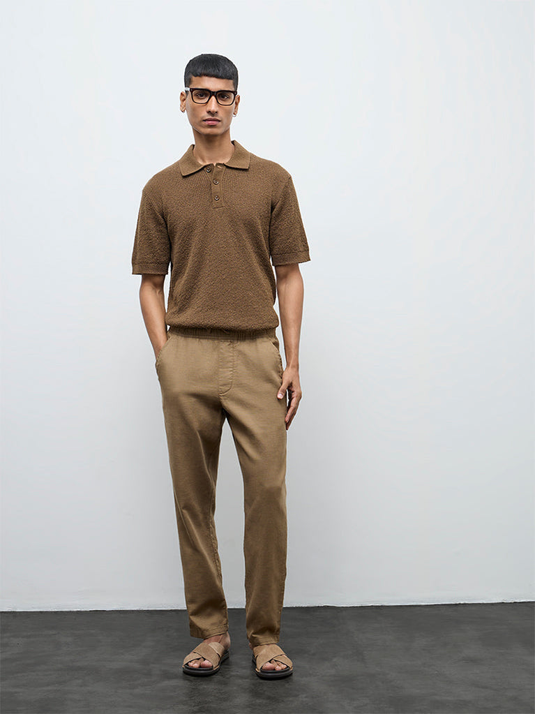 ETA Brown Textured Relaxed-Fit Polo T-Shirt
