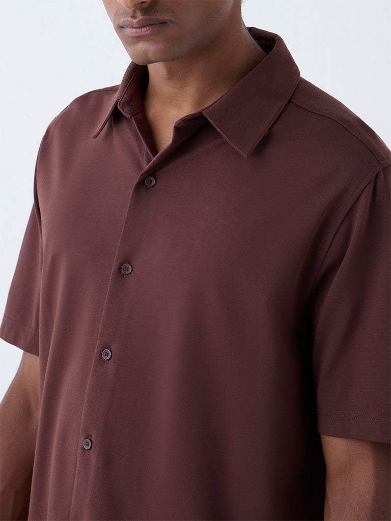 Ascot Dark Brown Solid Relaxed-Fit Shirt