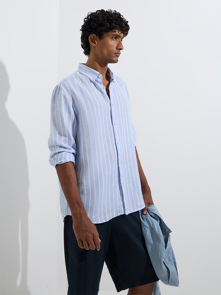 Ascot Light Blue Striped Relaxed-Fit Linen Shirt