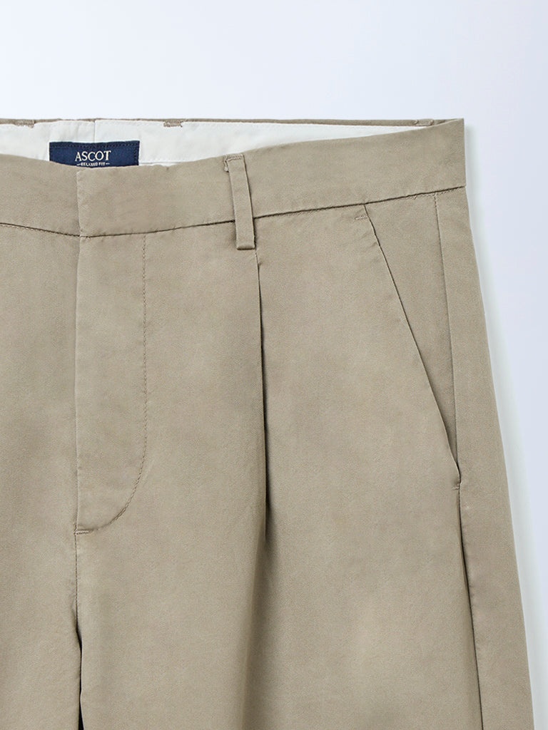 Ascot Light Taupe Mid-Rise Relaxed Fit Cotton-Blend Trousers
