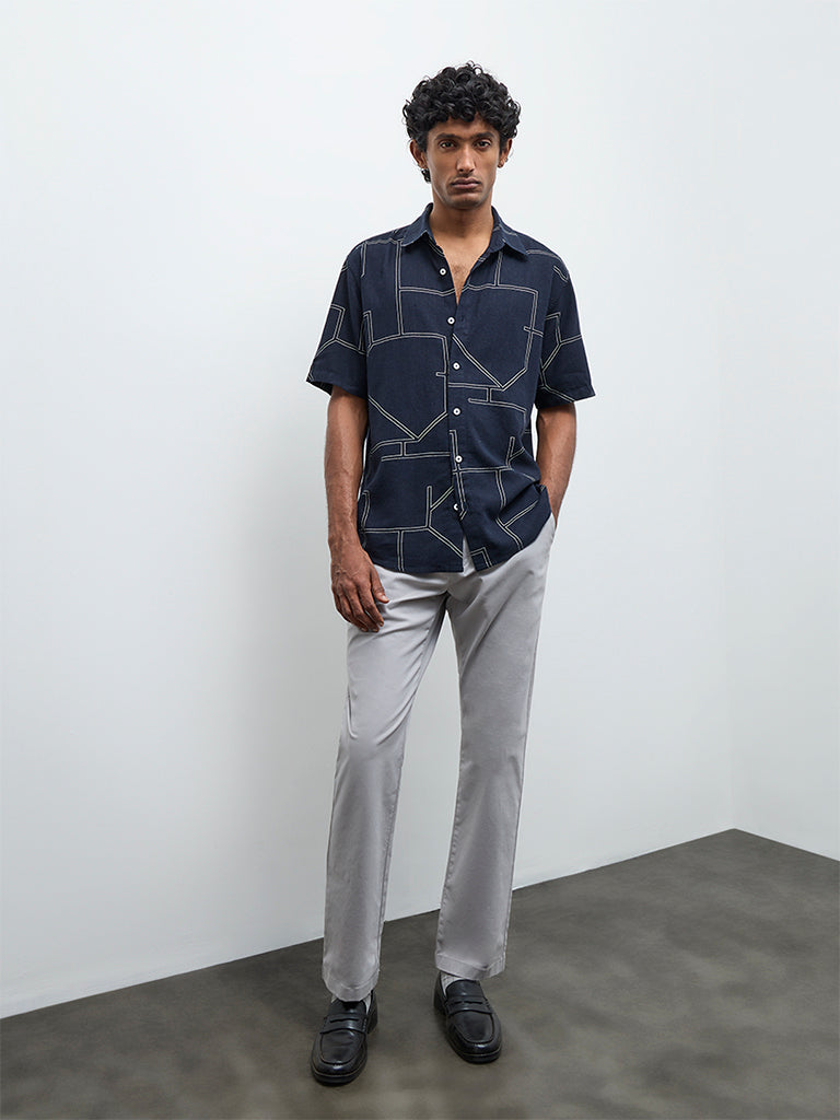 Ascot Navy Abstract Printed Relaxed-Fit Shirt