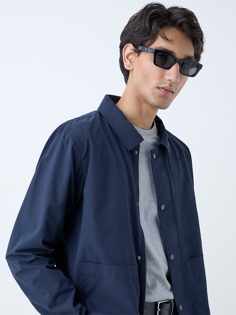 Ascot Navy Solid Relaxed-Fit Jacket