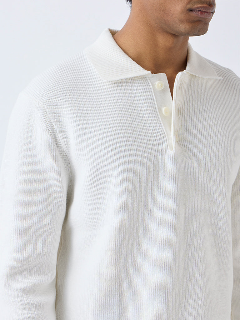 Ascot Off-White Relaxed-Fit Cotton Polo Sweater