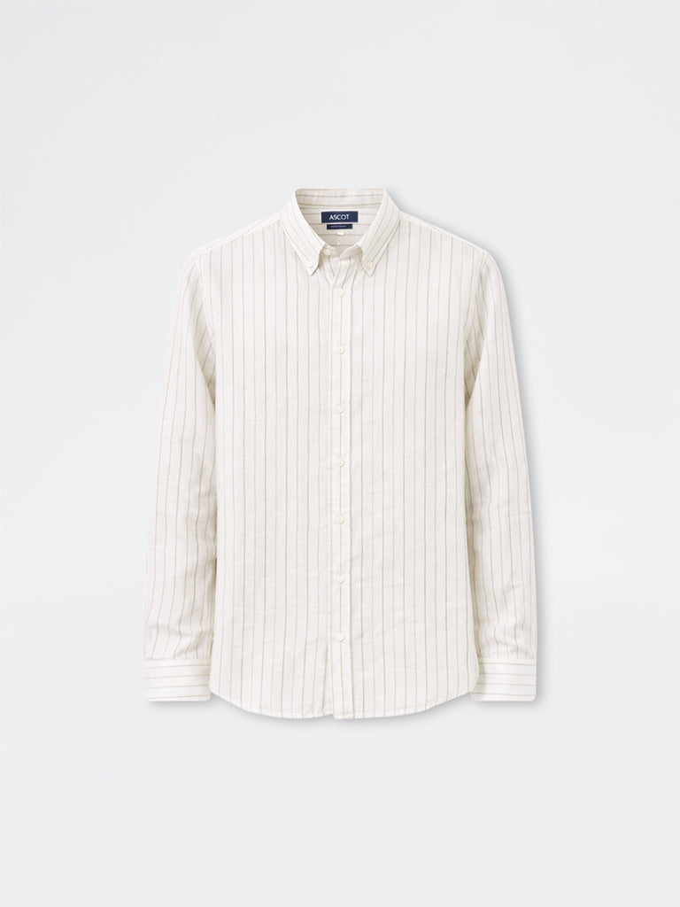 Ascot Off-White Striped Relaxed-Fit Linen Shirt