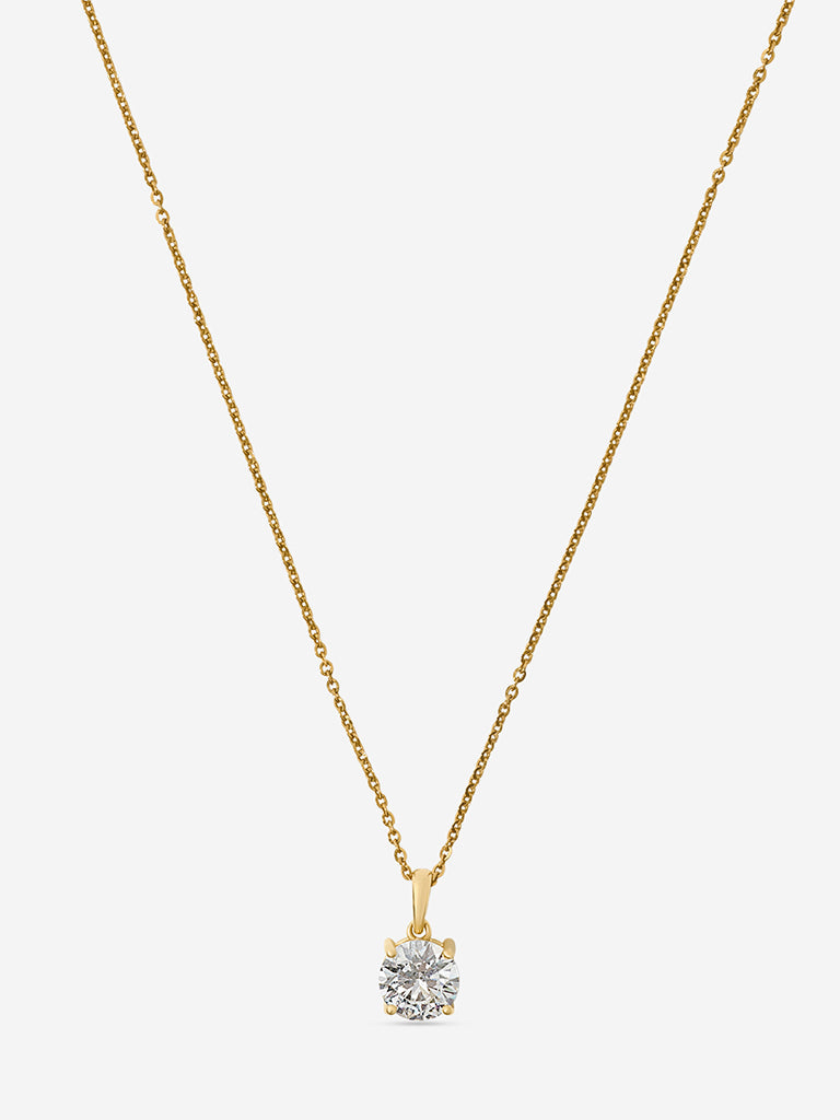A study in modern elegance, this pendant pairs a fluid gold-vermeil chain with the timeless brilliance of a lab-grown solitaire. The finely articulated links create a graceful line across the neckline, drawing the eye to a meticulously cut stone that radiates exceptional clarity. Designed with a sculptural simplicity that feels both refined and contemporary, it’s a piece that elevates everyday styling and adds a luminous finish to evening looks.