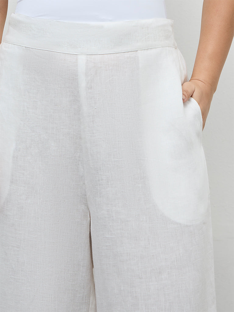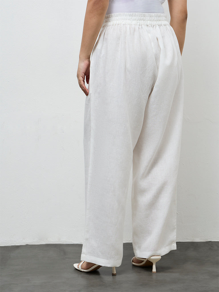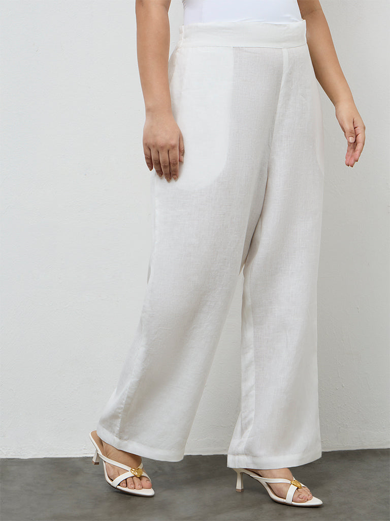 Diza White Solid Linen Pants