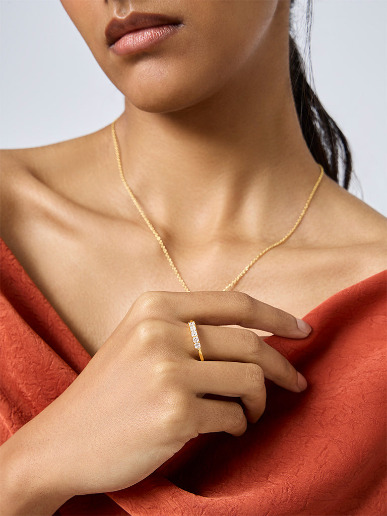 Emerald Cut Half Eternity Gold Plated Lab Diamond Ring