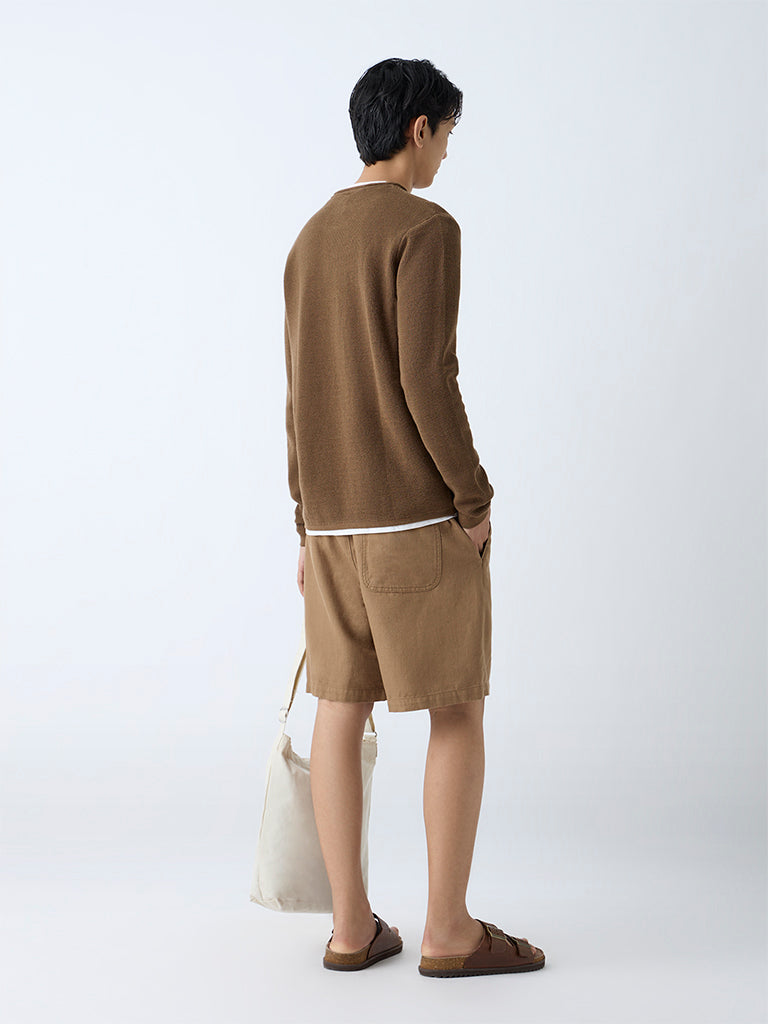 ETA Brown Solid Relaxed-Fit Mid-Rise Cotton Shorts