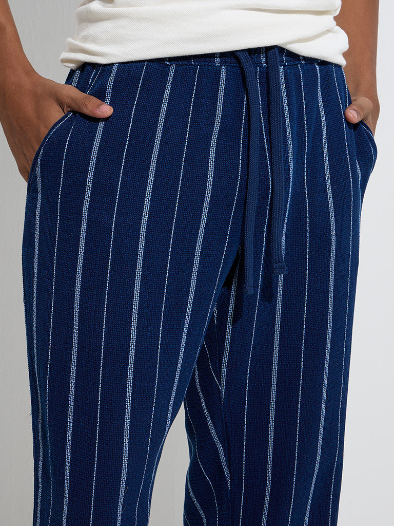 ETA Indigo Stripe Printed Mid-Rise Relaxed-Fit Cotton Chinos