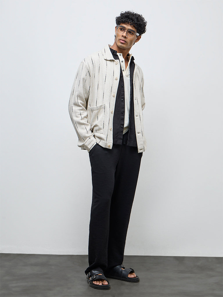ETA Light Beige Printed Relaxed-Fit Cotton Jacket