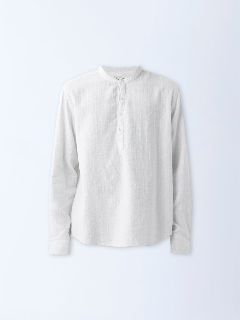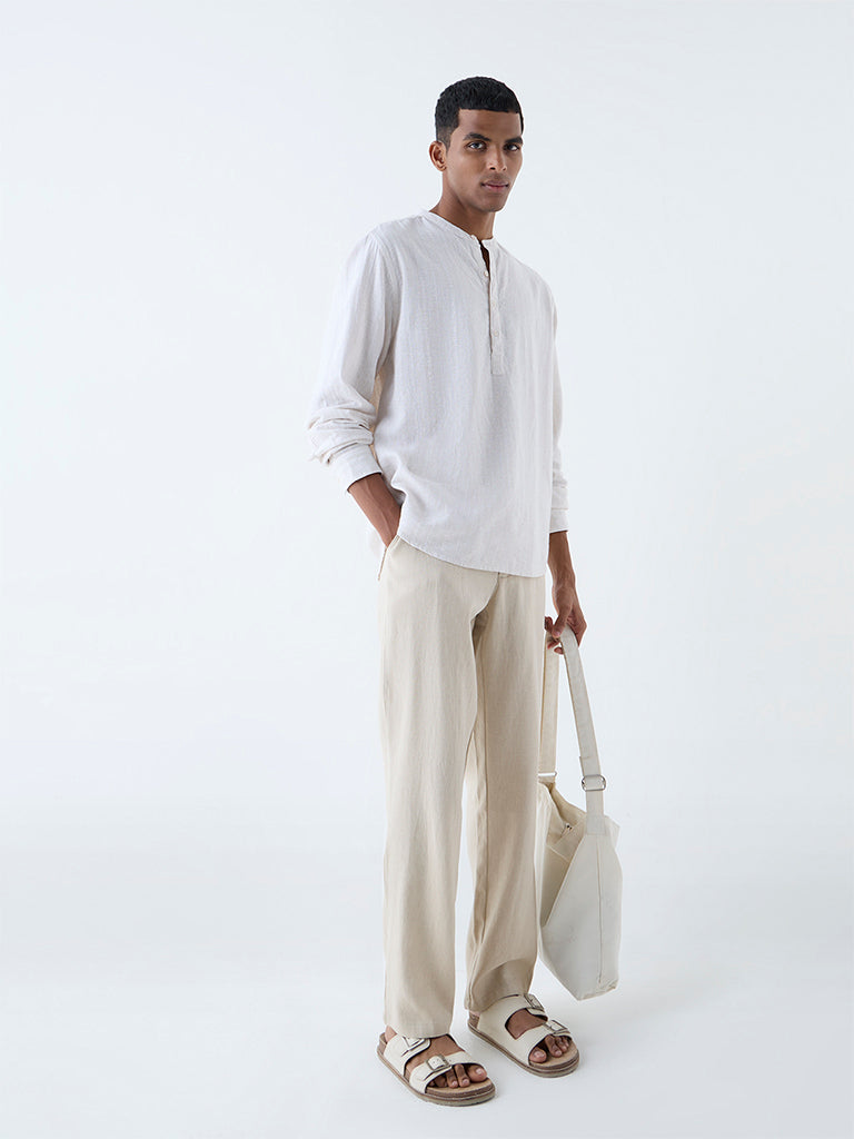 ETA Light Beige Solid Relaxed-Fit Cotton Shirt