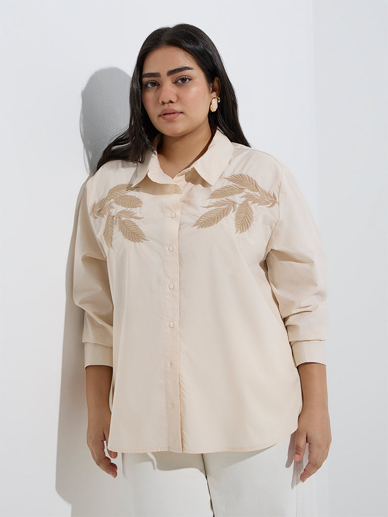 This beige shirt from Gia is fashioned with leaf embroidery for a refined touch. Crafted from a lightweight fabric, it’s styled with a classic collar, a button placket, and full sleeves with buttoned cuffs.