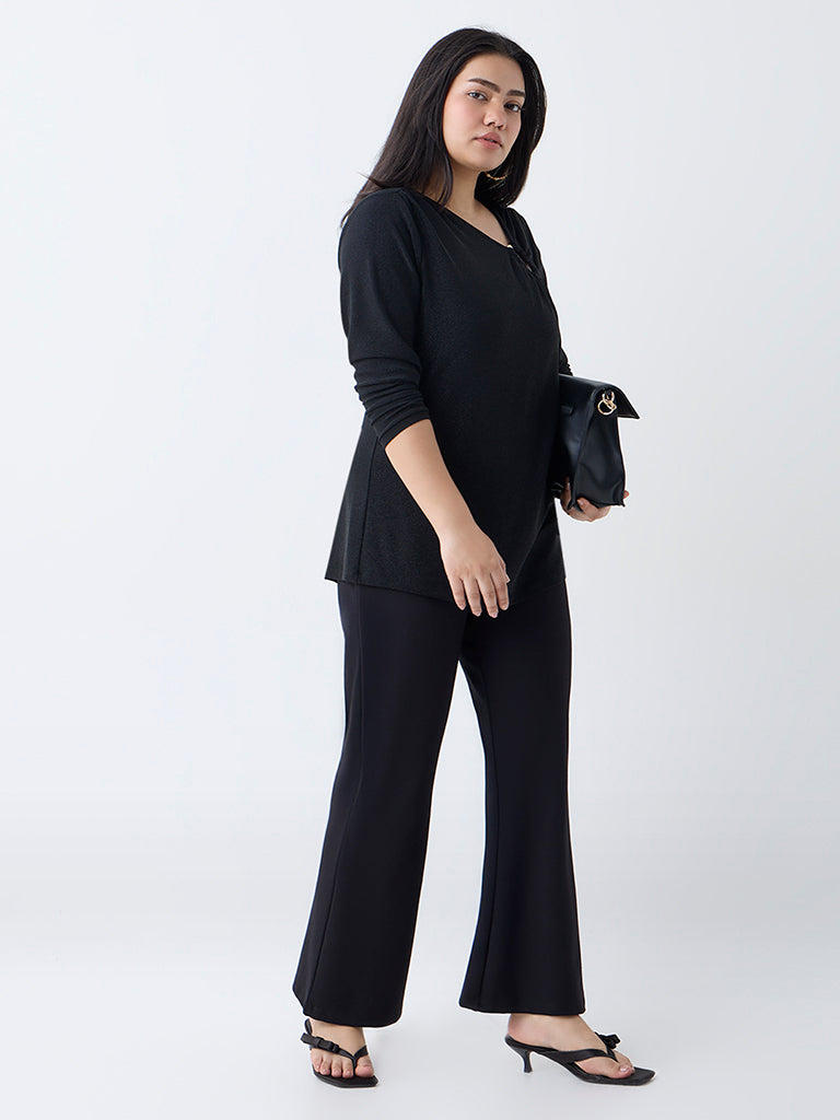 Bring a touch of attitude to your everyday wardrobe with this black top from Gia. Crafted from a soft cotton blend, it features a structured shape balanced by cut-out detailing along the neckline for a subtle edge. Full sleeves offer comfortable coverage, making it a piece you’ll reach for when you want confidence with zero effort.