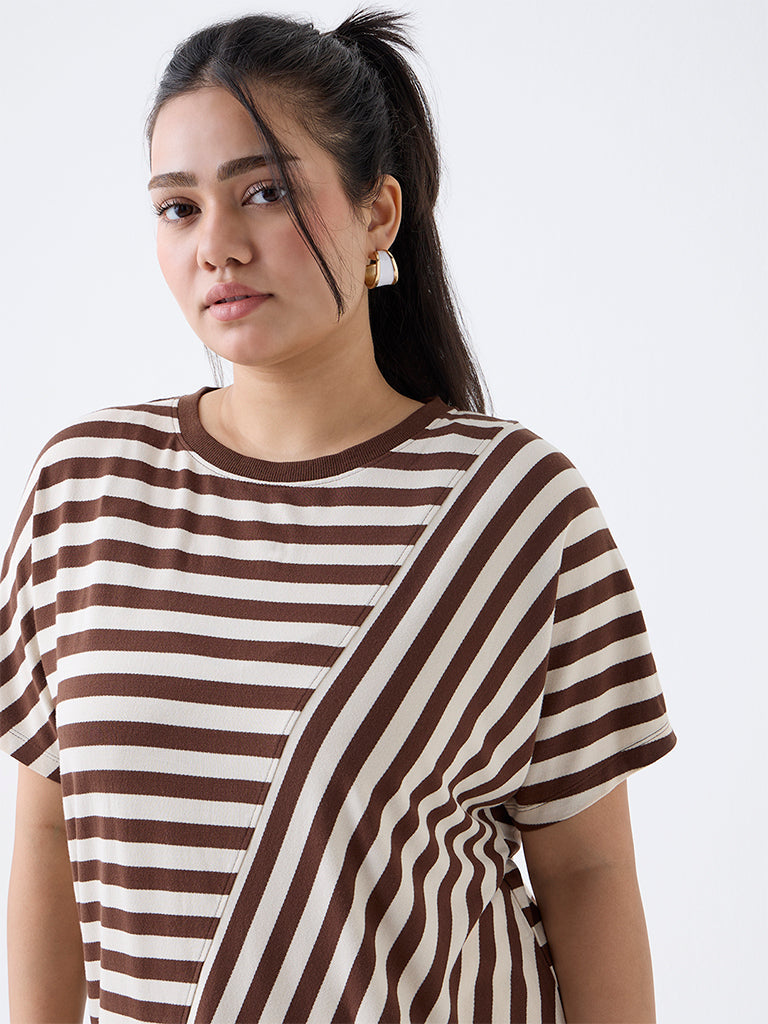 Made for those comfort-first mornings, this brown t-shirt by Gia is refreshed with clean striped prints that feel both timeless and effortlessly wearable. Milled from a breathable fabric, it’s styled with a classic crew neck and relaxed dolman sleeves that offer movement and a naturally flattering drape.