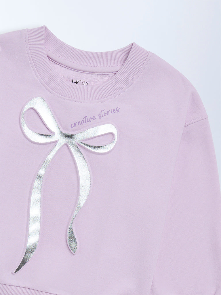 HOP Kids Girls Lilac Bow-Detailed Cotton-Blend Sweatshirt