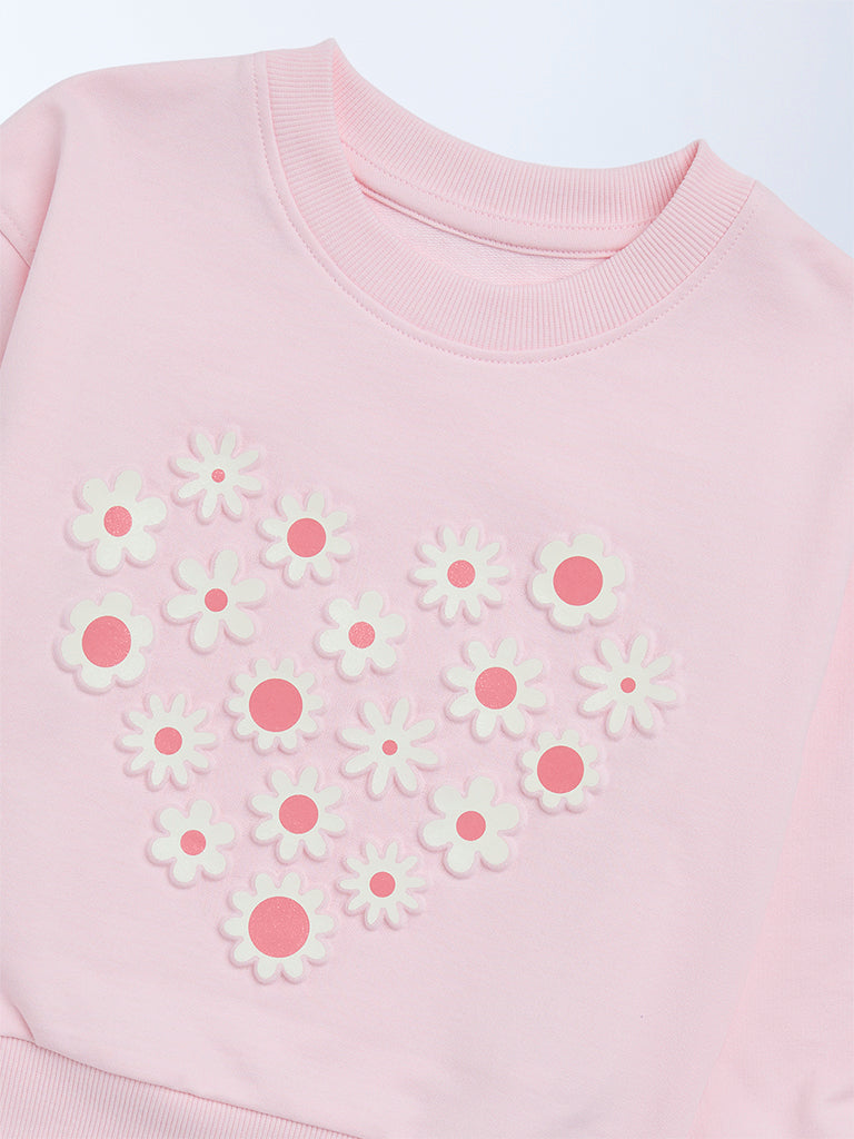 HOP Kids Girls Pink Floral Design Cotton-Blend Sweatshirt