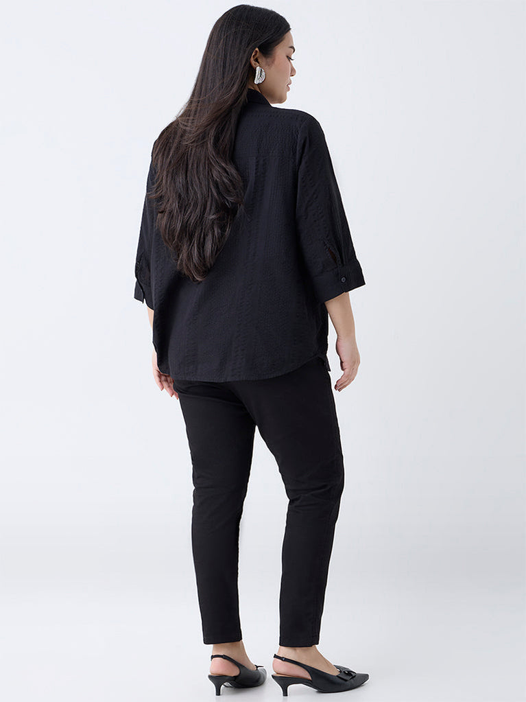 A study in understated sophistication, this black shirt from Ascot is tailored in a relaxed handle from a sumptuous linen-blend. Defined by its mandarin-collar design, button-up front and full sleeves, it embodies timeless elegance suited to semi-formal settings and evening occasions.