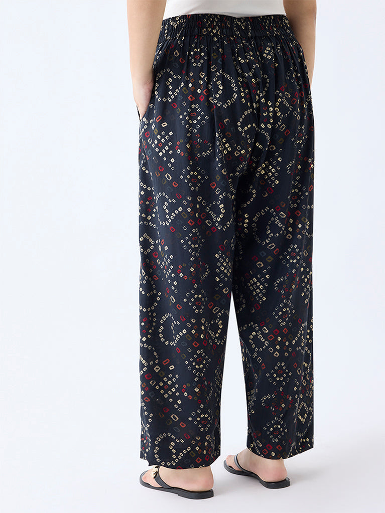 Diza Black Bandhani Print Pants