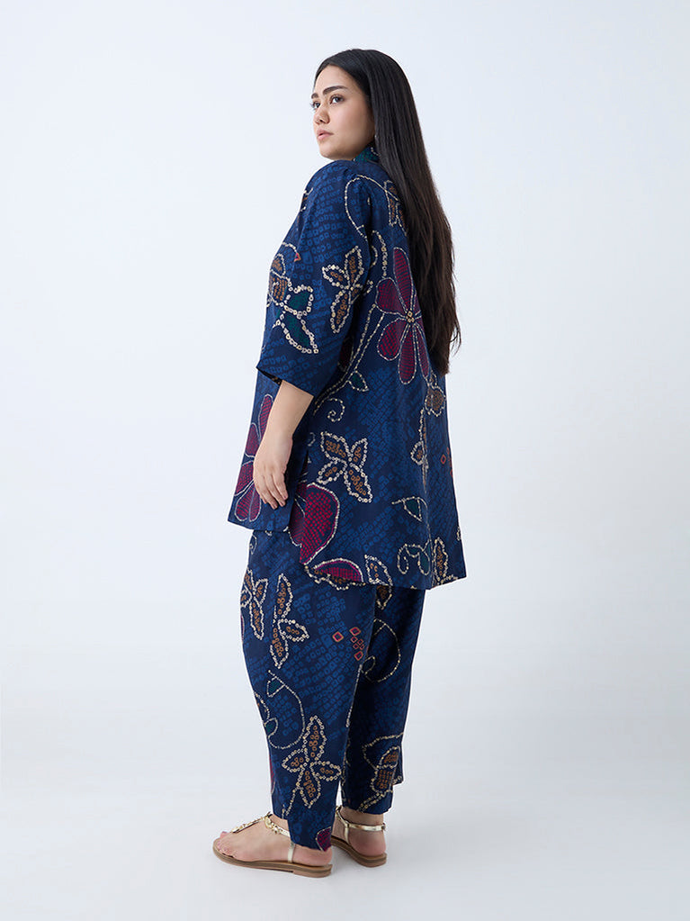 Diza Indigo Floral Bandhani Printed Tunic