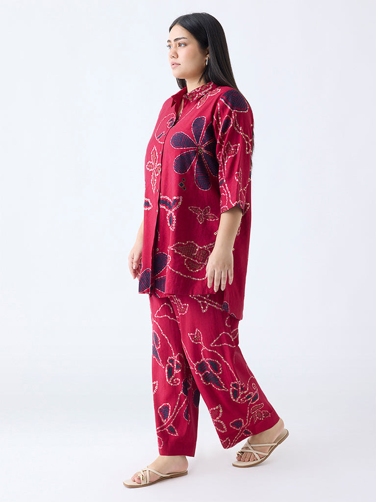 The perfect mix of modern vibe with traditional details, these red ethnic pants from Diza features bandhani-inspired floral designs for added elegance while the elasticated waist ensures a comfortable fit.