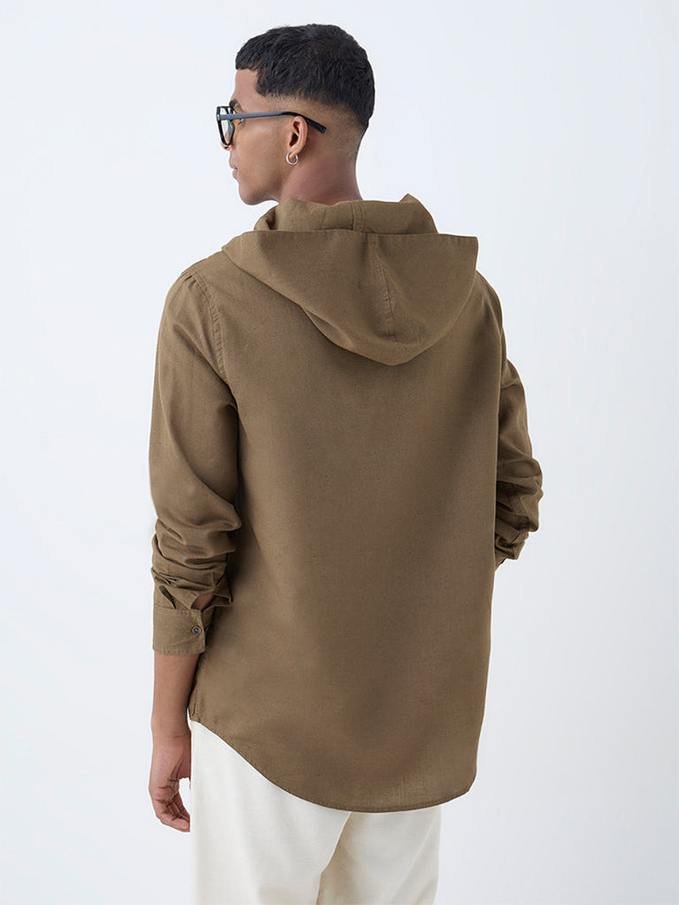 ETA Brown Solid Relaxed-Fit Cotton-Blend Hooded Shirt