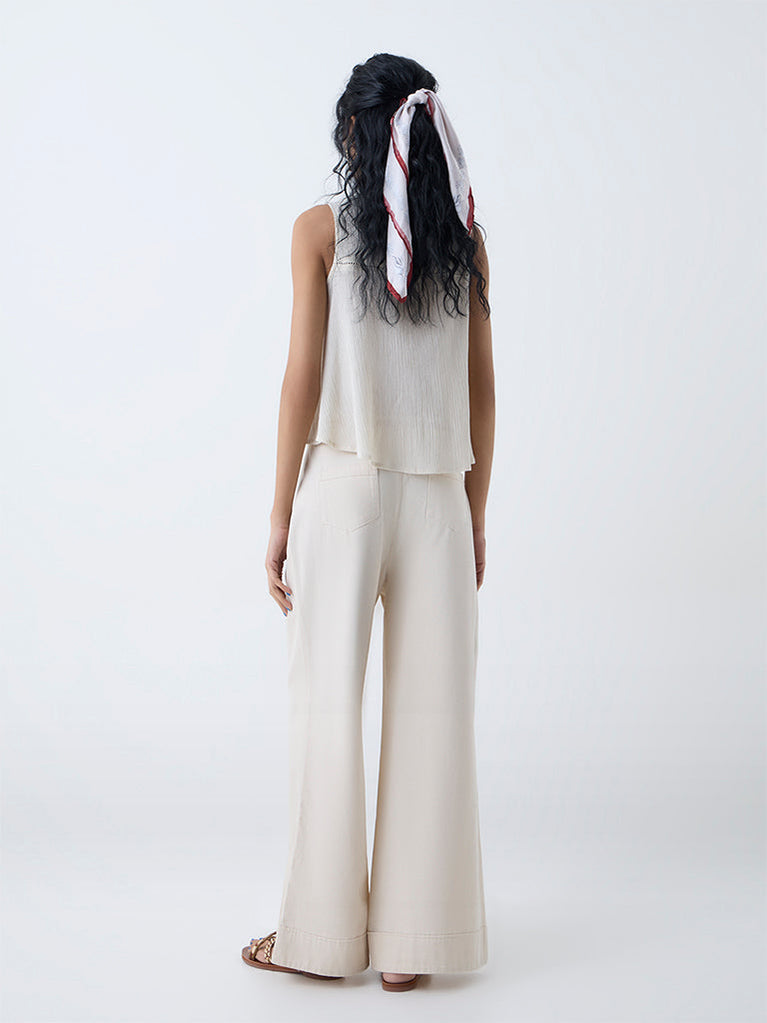 Bombay Paisley Off-White Wide-Leg Cotton Pants with Belt