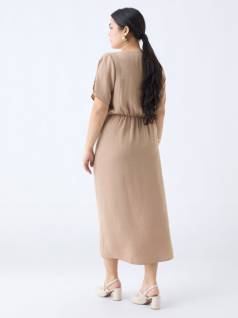 Gia Beige Knot-Detailed Straight Dress