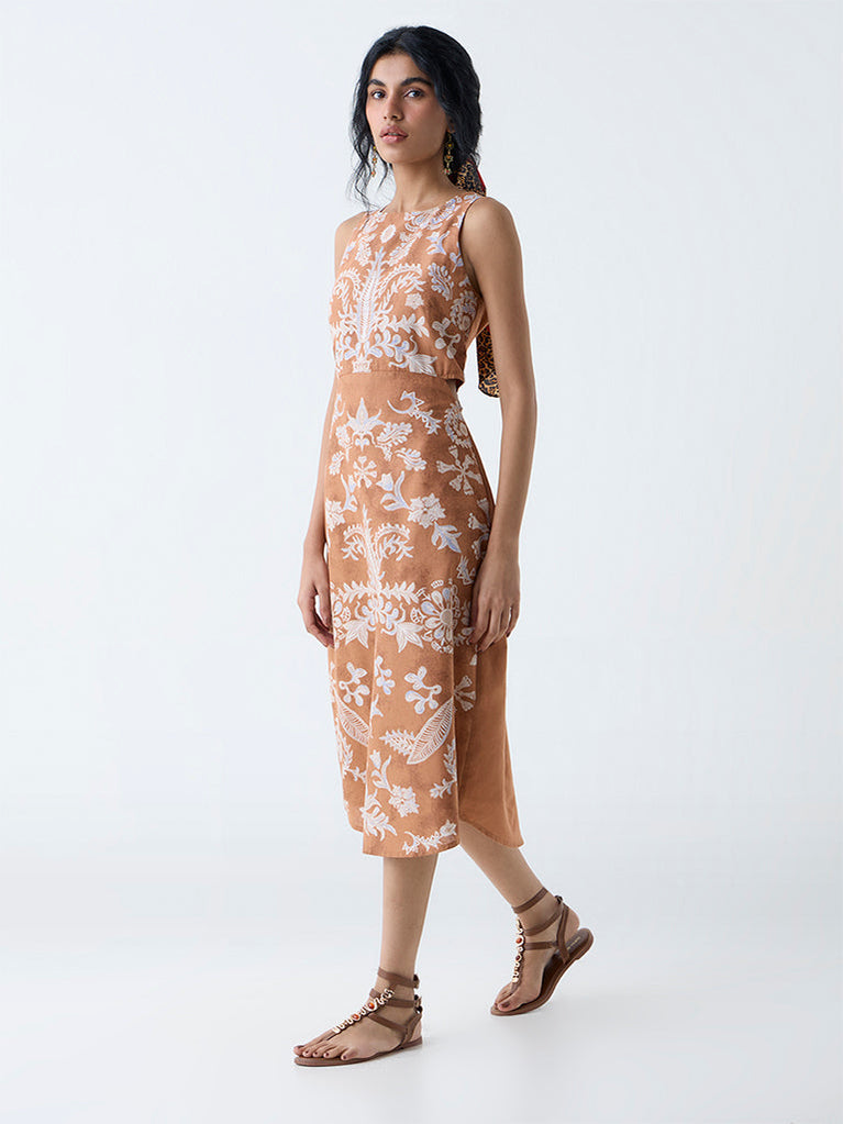 This tan dress from Bombay Paisley is elevated with a charming floral print for effortless appeal. Featuring a round neck and a playful cut-out detail at the waist, it strikes the perfect balance between feminine style and contemporary edge.