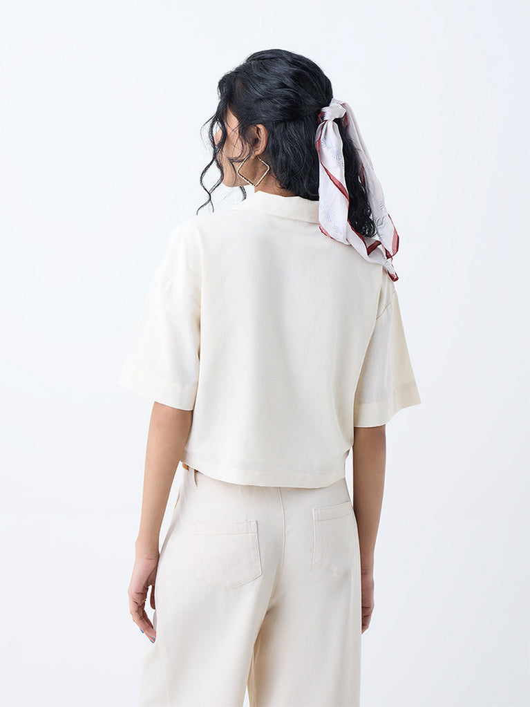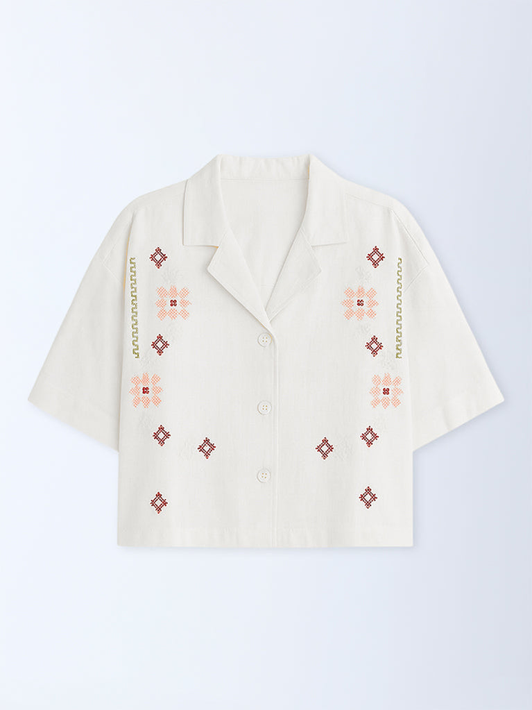 ETA White Embroidered Relaxed-Fit Cotton Shirt