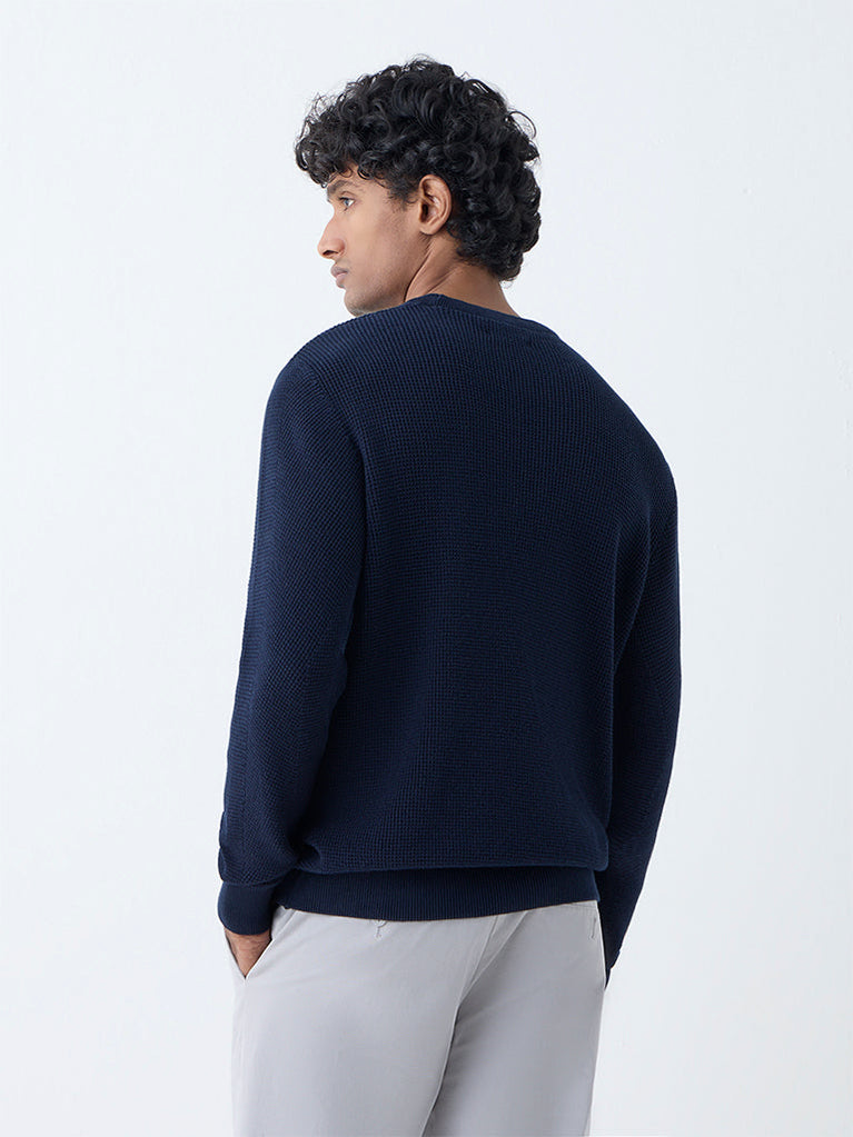 Ascot Navy Knit-Textured Relaxed-Fit Cotton Sweater