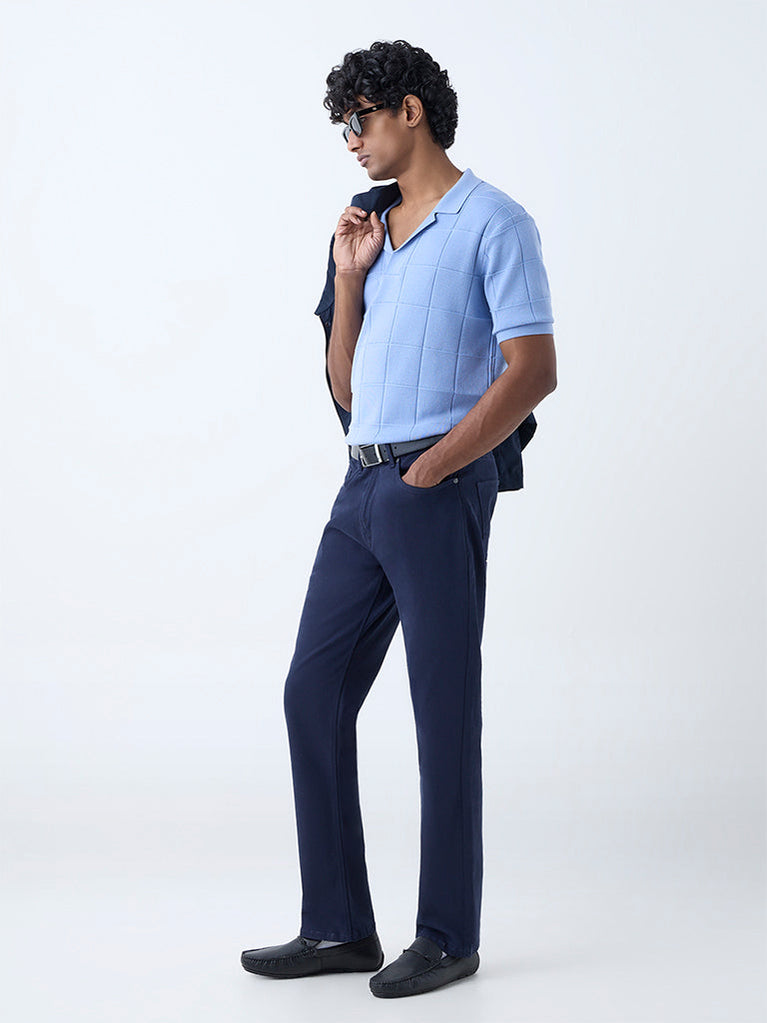 Ascot Dark Blue Relaxed-Fit Mid-Rise Trousers
