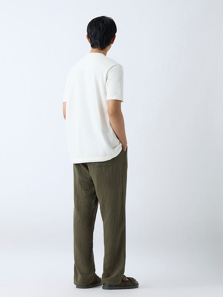ETA Olive Textured Relaxed-Fit Mid-Rise Cotton Pants