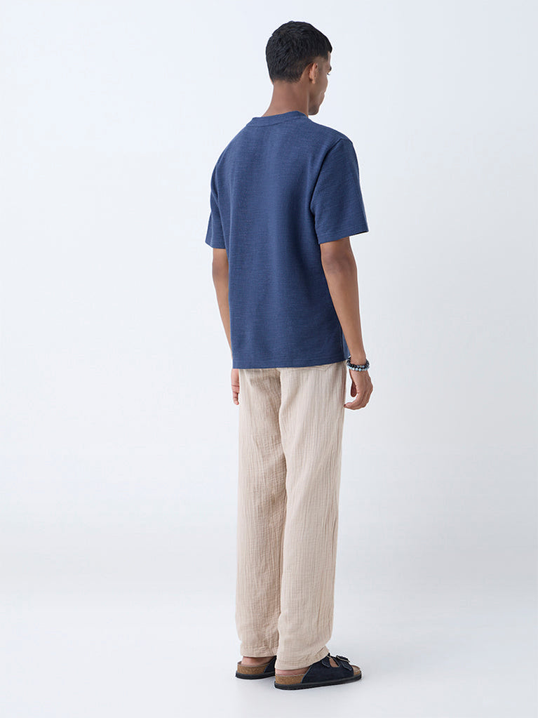 ETA Indigo Textured Relaxed-Fit Mid-Rise Cotton Trousers