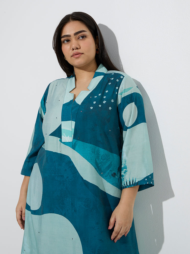 Diza Teal Abstract Patterned A-Line Kurta
