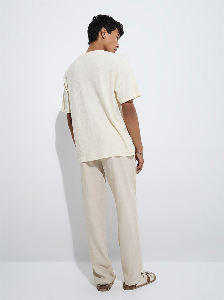 ETA Cream Embroidered Relaxed-Fit Cotton Shirt