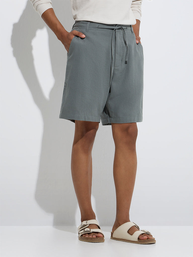 ETA Grey Relaxed-Fit Mid-Rise Cotton-Blend Shorts