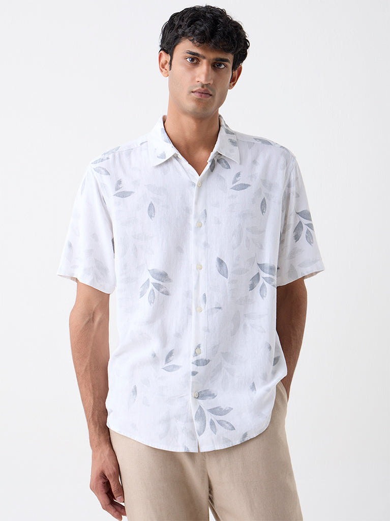 Ascot White Botanical Design Relaxed-Fit Shirt