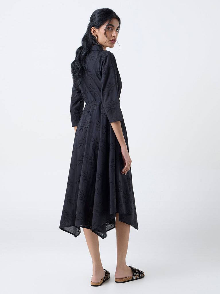 Bombay Paisley Black Schiffli Cotton Asymmetric Dress