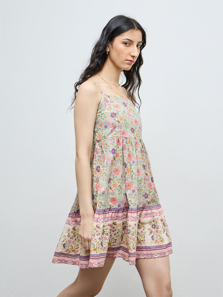 Bombay Paisley Mint Floral Cotton A-Line Dress