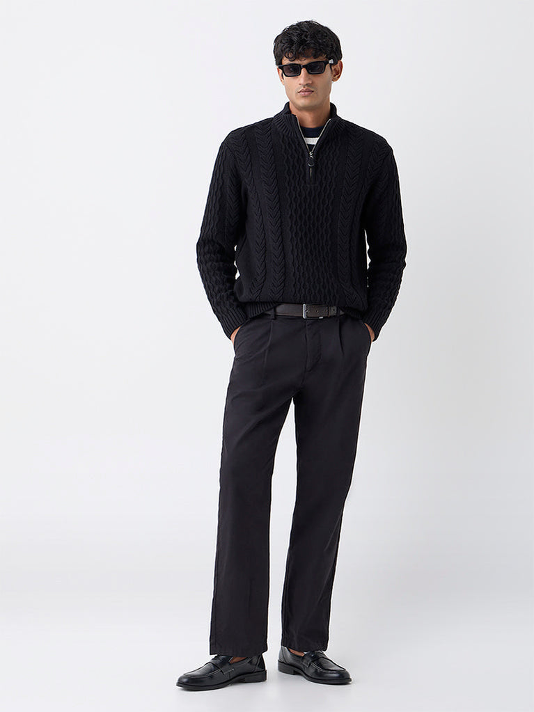 Ascot Black Relaxed Fit Cotton Three-Quarter Zip Sweater