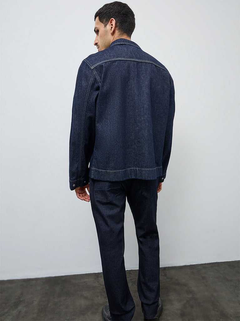 Crafted for timeless appeal, this blue denim jacket from Ascot is made from pure cotton for a premium feel. Designed in a relaxed handle, it features a classic collar, full-zip front, and full sleeves. Dual chest pockets complete the design, delivering a balance of utility and understated sophistication.