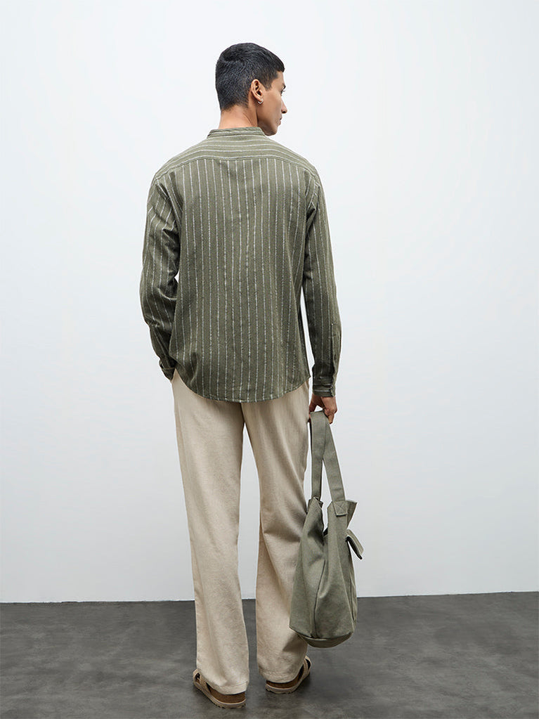 ETA Olive Striped Relaxed-Fit Cotton Shirt