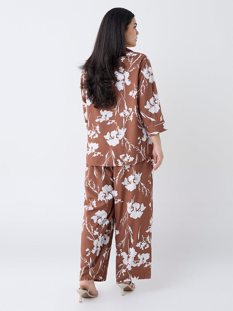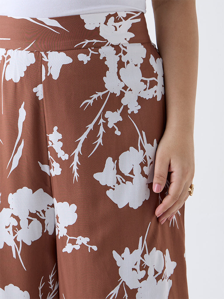 These brown trousers by Gia are crafted from an ultra-lightweight fabric. Framed with delicate foliage prints, they bring a soft statement to your daytime wardrobe. The elasticated waistband ensures all-day comfort, while side pockets add functional appeal.