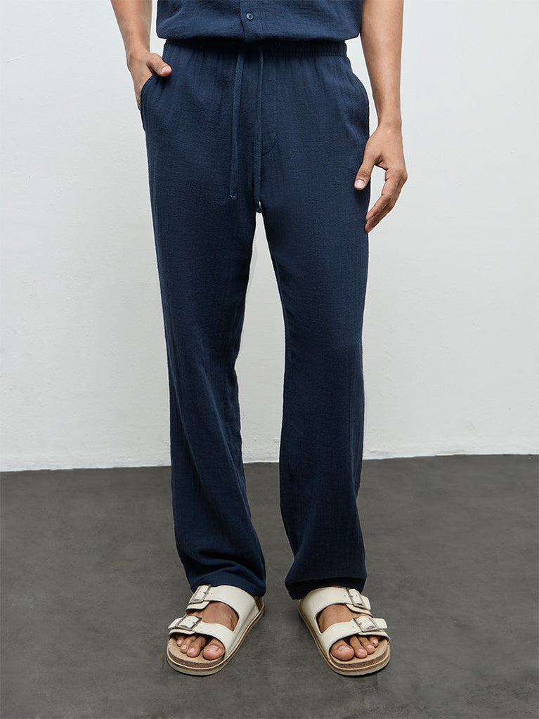 ETA Navy Textured Relaxed-Fit Mid-Rise Cotton Chinos